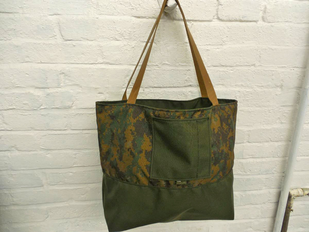 A larger tote than The Weekender, this is our 2-piece design tote, made from reclaimed and recycled heavy duty Cordura© Nylon and/or 18 oz Vinyl or 22 oz Marine Vinyl. Leather, Seatbelt, or Cordura style strap, with Cordura or Sunbrella© liner. Durable, long-lasting, and immaculately crafted. This is a stylish tote bag, ideal for shopping or general purpose use.